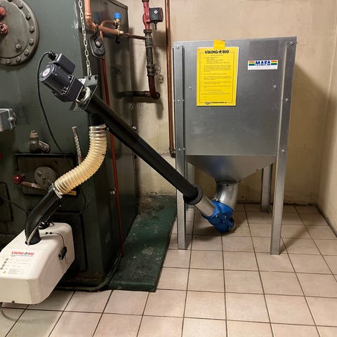 Säljer en fullt fungerande pelletstransportör med motor, idealisk för att koppla mellan pelletsförråd och brännare. Går som en klocka!