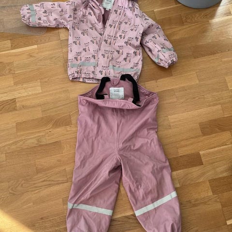 fodrade regnbyxor och regnjacka 122 resp. 110-116