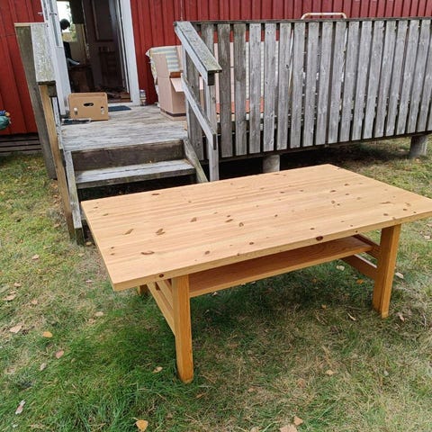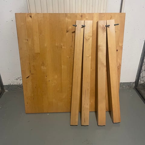 Ekbord med 6 stolar + 2 iläggsskivor. Säljes nedmonterat och klart för transport.