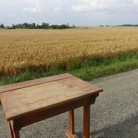 Gammal skolbänk i massivt trä. Är ommålad i vitt och även bytt underredet och ”pappershållaren” Behöver som framgår av bilderna lite kärlek med ny färg. Mått: B: 70 cm D: 52 cm H: 60 cm