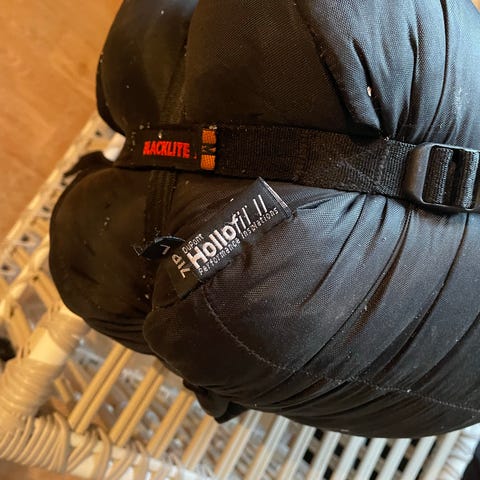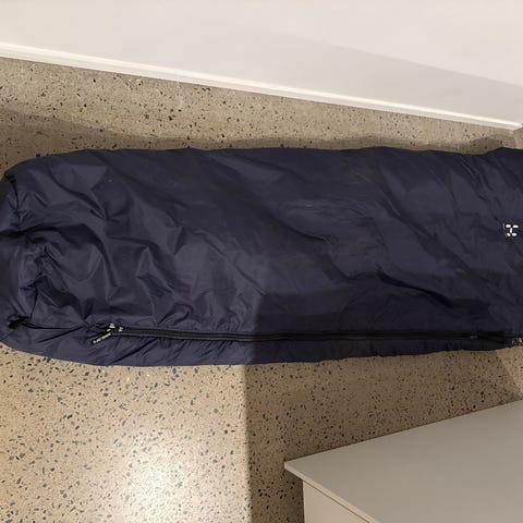 Påsen har ett litet hål men sovsäcken är i mycket fint skick