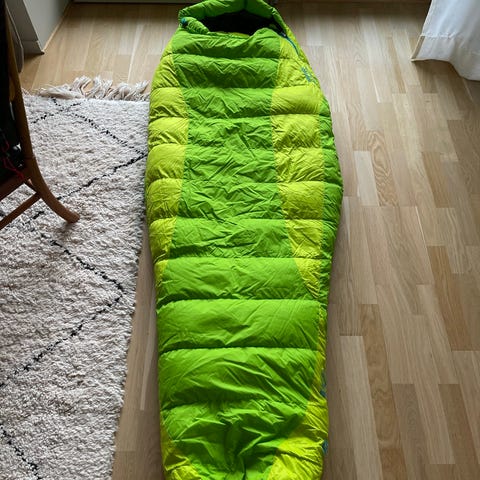 Påsen har ett litet hål men sovsäcken är i mycket fint skick.