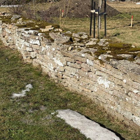 Kullersten vit ca 10x5 ca 10kvm. Troligtvis mer snålt räknat. Finns en del av stenarna som har cement runt sig. Hämtats enligt överenskommelse. 1000:- för alla.