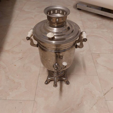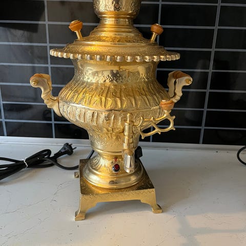 Samovar Rysk Tekokare Fint skick Har ej testat om den funkar då det är annan kontakt på den så vet ej om den funkar att använda. Säljes i befintligt skick och säljes i förstahand som prydnad.