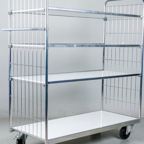Vagnen försedd med 2 st. fasta, 2 st ledade hjul.