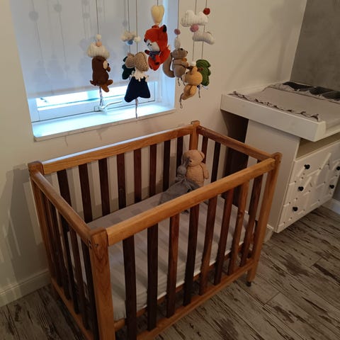 Madrasshöjden är justerbar i i 3 olika höjder. Sidopanelen kan avlägsnas med 2 barnsäkra tryckknappar.