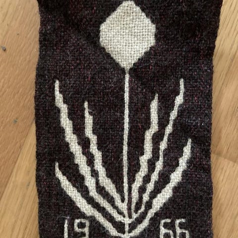 Unik! Jättefint skick små broderade korsstygn i brunt på beige botten. Köpt till min retrolägenhet men hann aldrig sättas upp. Perfekt i din fikahörna