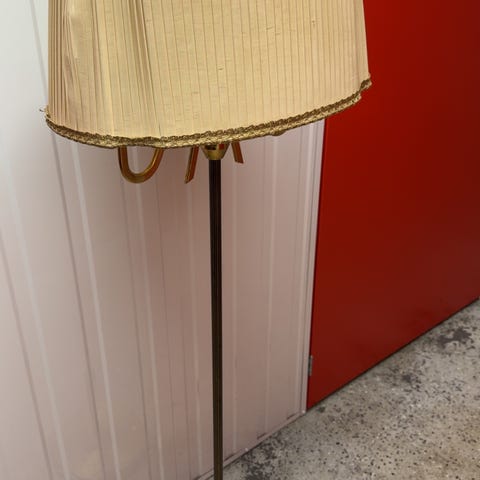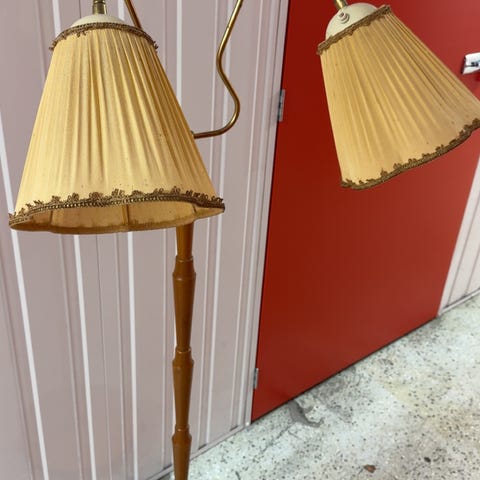 Fin golvlampa i furu från Markslöjd i Kinna. Originalskärm. Kan finnas något märke eller någon fläck, annars är hela lampan hel och fin. Lysknapp nedtill på sladden. Bruksslitage. Höjd ca 135 cm. Hämtas på plats.