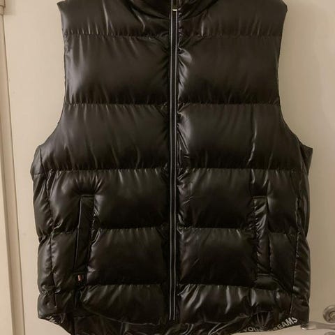 Två fickor med dragkedjor framtill. Västen är bekväm, varm och ser nästan ny ut.