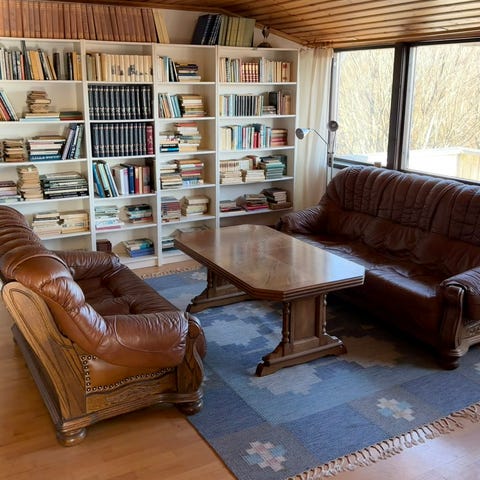 Lite lacksläpp på fotöljerna, fixar den händiga lätt. Dynorna alltid förvarade innomhus. Soffan är 199 cm lång och 40 cm djup. Fotöljerna är 70 cm breda och 75 cm djupa.