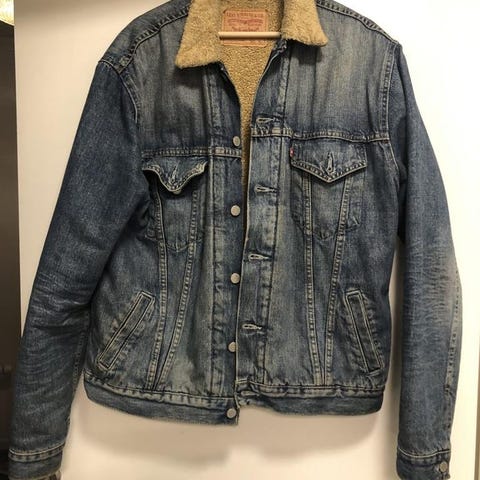 Vintage jacka i bra skick. Mått från nacken och ner är 70 cm, tvärs över bröstet 60 cm.
