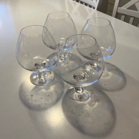 Jag säljer 8 konjakskupor från Orrefors , varav de flesta aldrig använts. Jag betalade över 600 kr st och säljer dem för 75 kr.