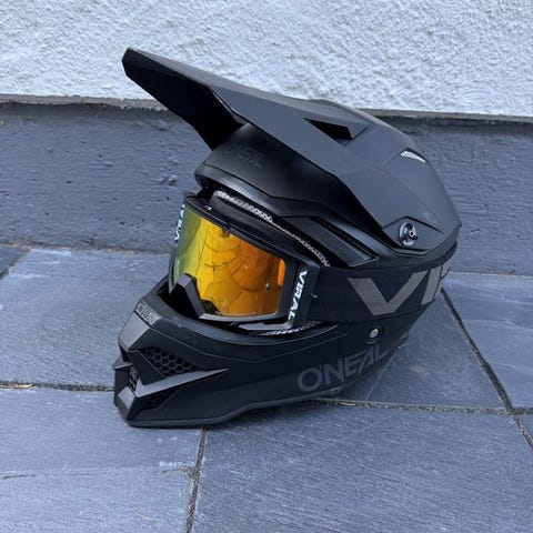 Crosshjälm i stl M inkl glasögon är som ny. Använd ett fåtal gånger