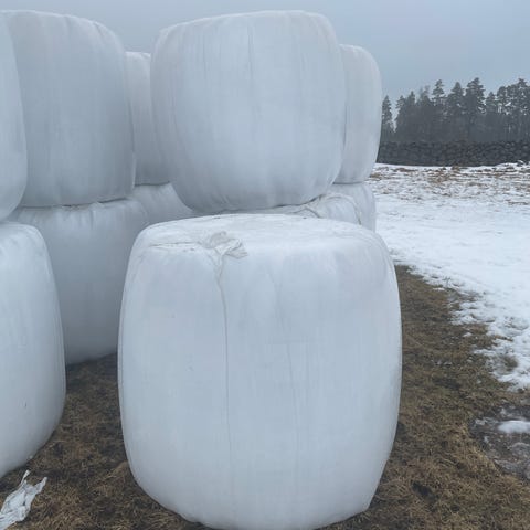 Hösilage från 1:skörd, Hårdpressade rundbalar 125 cm i diameter. Finns 2 mil öster om Växjö