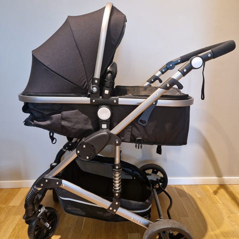 Luna Barnvagn med sitt- och liggdel blå, vit, röd