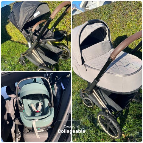 Setet består av både liggdel (gondol) och sittdel (sulky) – båda i mycket fint skick.