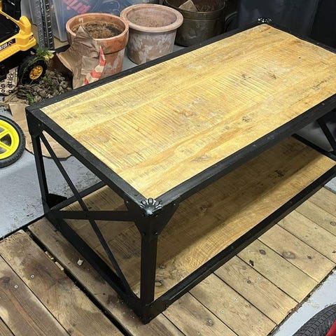 Mycket vackert soffbord. Tyngd i pelarfoten gör att det står stadigt. Några mindre märken på bordsskivan.