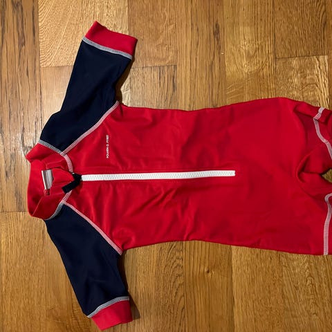 UV-kläder från Polarn och pyret i storlek 110/116. Fint använt skick, men en liten fläck bak på ena byxbenet (se sista bilden).