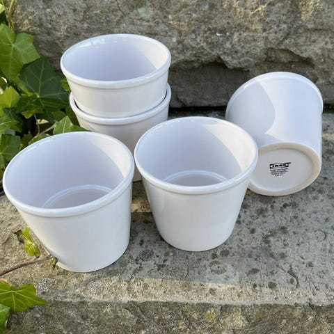 (Inget hål i krukorna, se bild).