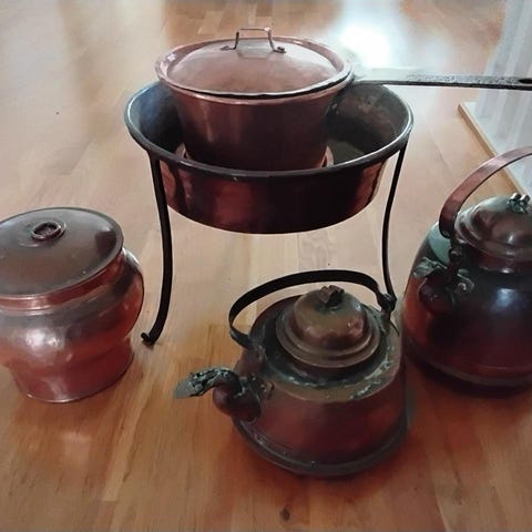 Fickplunta i koppar med sex muggar.