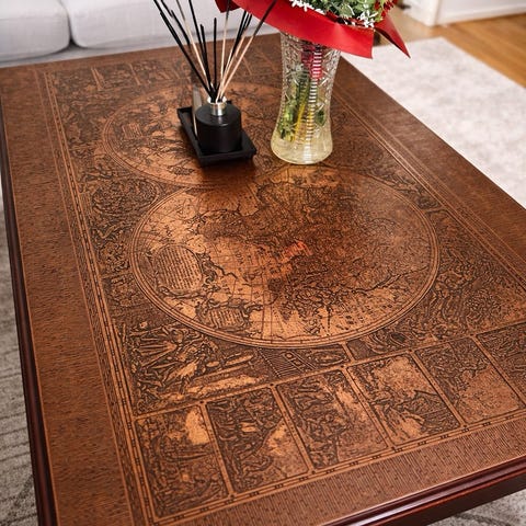 Soffbord med unika inläggningarbeten på bordsskivan från 70 Talet Br.75/75 Hj52 6