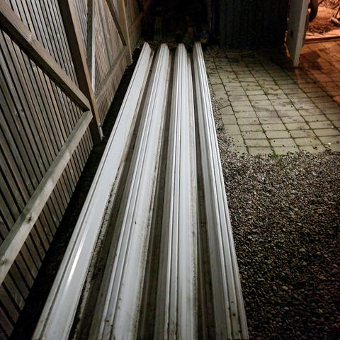 Tätband för att täppa till under plåtarna; förhindrar smådjur att trilla i och drunkna i poolen, förhindrar vindfång. Skruv för att fästa plåtarna i träreglar du lägger längsmed poolens kanter.