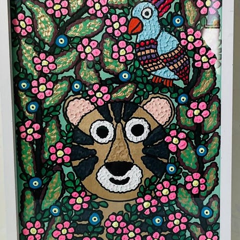 Format bild 2 = 37 x 28 cm vardera. Pris 150:-/st. Motiv Giraff resp Fågel.