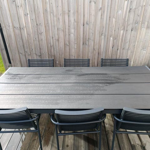 Bord och 6 stolar, stapelbara.