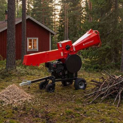 Fullhydraulisk vedprocessor med automatiserad klyvkolv. Vi lanserar vår största modell hittills som hanterar stockar upp till 50 cm i diameter. Maskinen hanteras med ett antal spakar som justerar inmatning, svärd, klo samt klyvkolv. När du har sågat stocken faller kubben ner i vaggan, och klyven startar automatiskt.