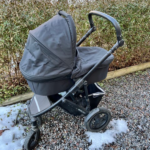 Vi säljer vår Emmaljunga NXT90 liggdelen är i mörkgrå färg och sittdelen är i svart. En stilren,stabil och smidig vagn i mycket fint skick. Vagnen är enkel att köra lätt att fälla ihop.