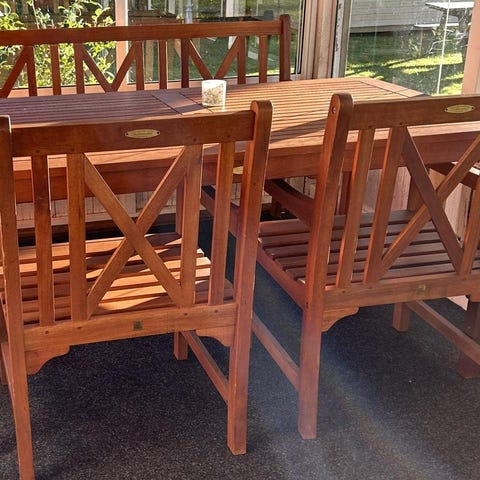 Matbord i fint skick, passar utmärkt till trädgården eller uterummet.