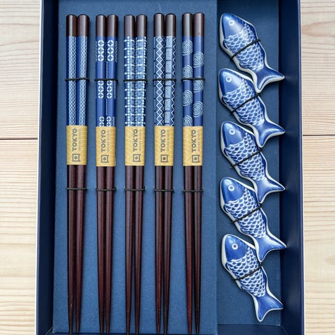 Koreanska ätpinnar, metall, platta 5 par, 70 kr