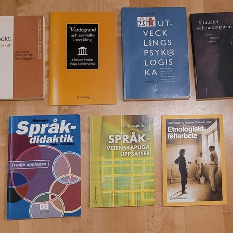 Böcker och kurslitteratur i ämnen: Svenska och Svenska som andra språk, engelska, didaktik, digitalisering i skolan, språksociologi, läsinlärning mm.