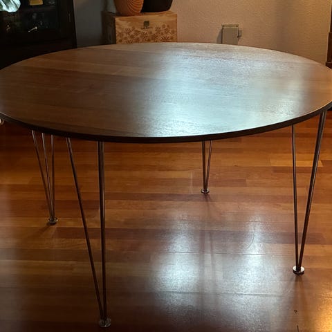 Stort åttkantigt bord x 3 med kraftiga ben i krom.