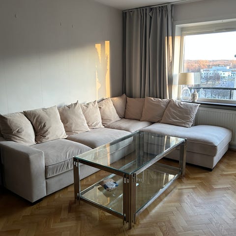 Soffans kuddar och dynor har avtagbara klädslar. Både djur fritt och rök fritt.