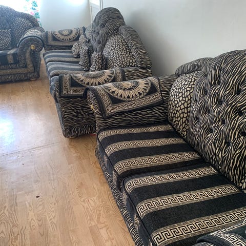 Möblerna är mer eller mindre oanvända och har stått i ett hem utan husdjur.