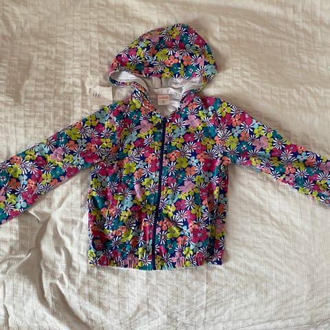 Tunn blommig jacka i storlek 110-116. Finns att hämta i centrala Uppsala. Endast swish.