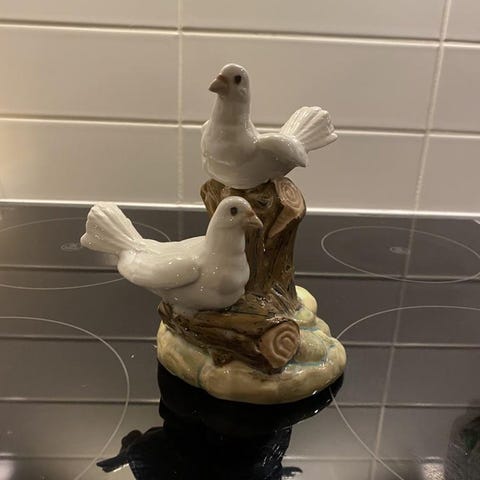 Poslinsfigur flicka med fågel från Tengra