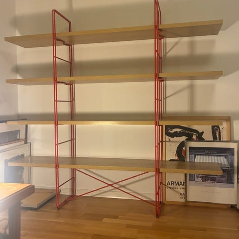 Otroligt fin retro hylla. Unik färgkombination, gråa hyllplan och grön metall. Inga repor eller skavanker. Hämtas på plats.