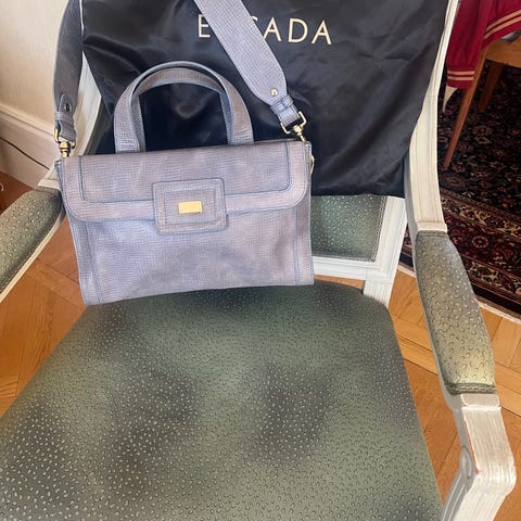 Läderväska ny gråblå med två olika handtag fr T. Herman
