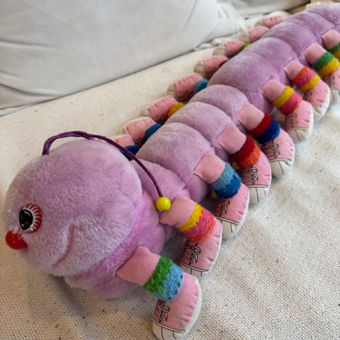 Mjukdjur i form av larver i olika färger. Flera olika modeller och färgkombinationer, bland annat turkos, lila och flerfärgade varianter. Tillverkade i mjuk textil med stoppning.