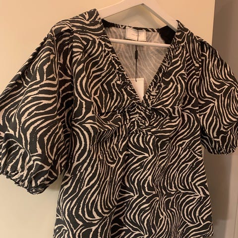 Svart och brun leopardmönstrad blus i strl S från Pigalle.