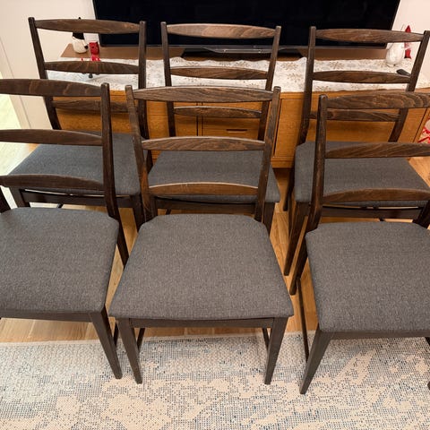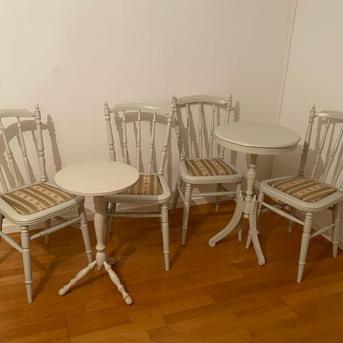 Stolar 50-tal stilmöbler med broderade sitsar samt ett litet mahogny pelarbord. 400:- hela paketet, allt i mycket bra skick.