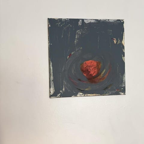 Texturmaterial på stretched canvas, utan lack. Barnvänligt inslag med enkla penseldrag.