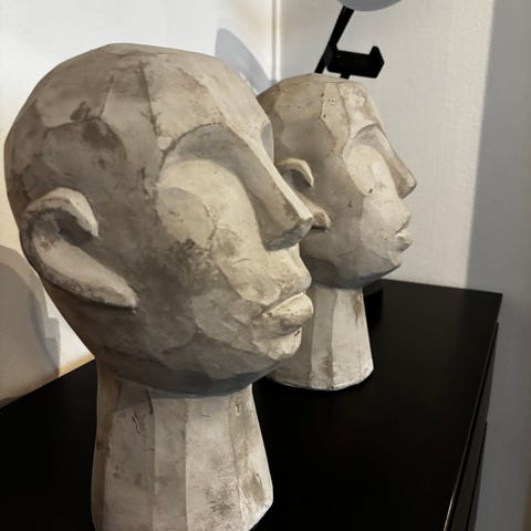 Tre huvud konstverk prydnad okänt ursprung huvudform