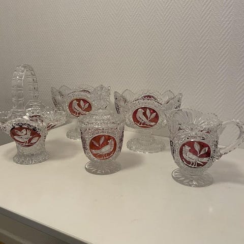 Total 9 stycken blandad ( skål, vas, Korg och vinglas). Mycket gott skick i glas .