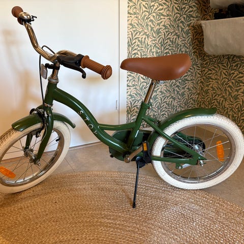 Från Stoy. I fin grön färg. Går att få stödhjul om man vill.