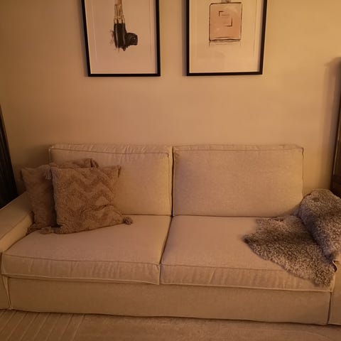 En bekväm soffa som passar perfekt i vardagsrummet eller gästrummet. Den har en stilren design och är lätt att matcha med andra möbler.