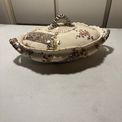Säljer en terrin med lock, diameter 25,5 cm, från Gustavsberg, 1900-talets mitt - andra hälft.