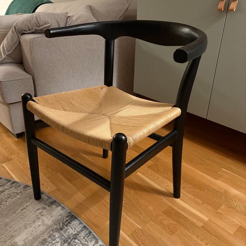 Säljer 4st Pia stolar från dk3 i mycket fint skick. Svartlackerad med naturflätad sits. Väldigt bekväma att sitta på. Säljes pga flytt.